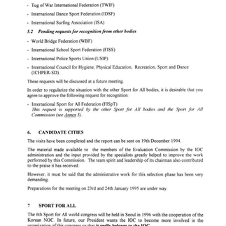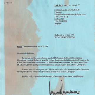 A major milestone in FISpT’s history came in 1991, when the Federation submitted its first application for recognition to the International Olympic Committee (IOC). After the completion of the documentation process in 1994, FISpT received provisional recognition during the IOC Executive Board meeting in Atlanta in December 1994. This was officially confirmed in January 1995, and in June 1995, during the 104th IOC Session in Budapest, FISpT obtained full and definitive recognition.